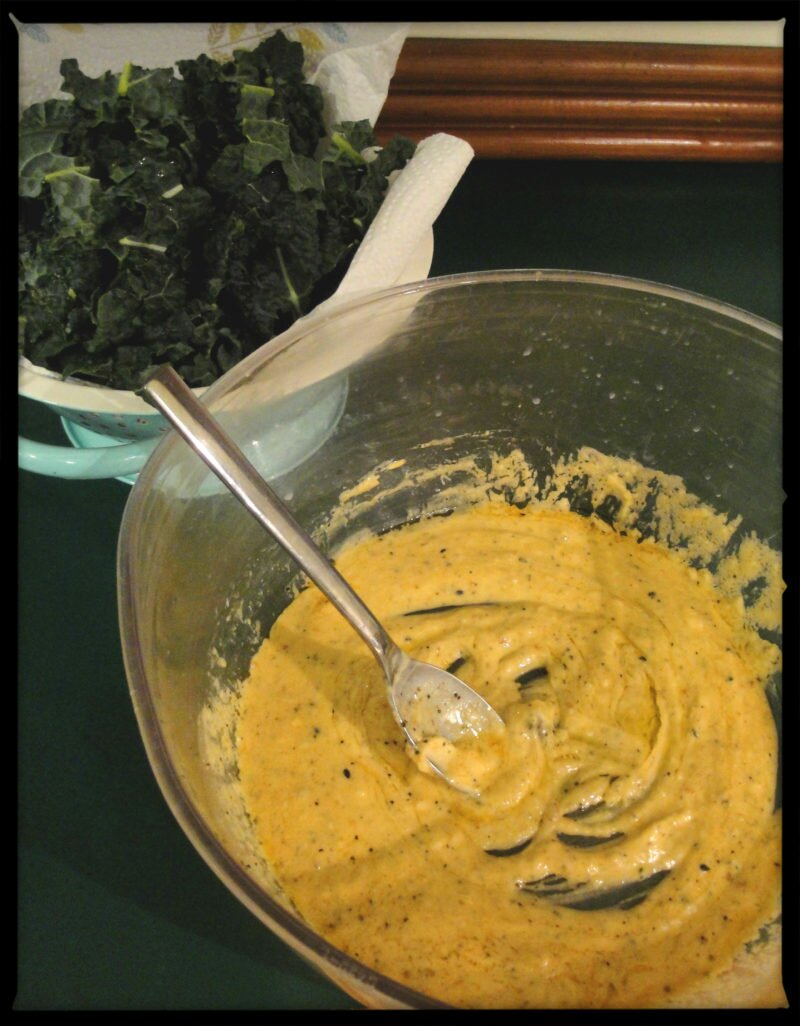Preheat oven (400 degrees) and then dice your potatoes and brussel sprouts. Drizzle with olive oil and seasonings and pop into oven for 20 minutes. In the meantime, clean your kale and leave in colander with paper towels (shown in picture). And then make your dressing in large bowl and put aside. By that time, your veggies are ready to be flipped. Once you turn them, they will need an additional 15-20 minutes. Mix all together and enjoy! I like to add hemp hearts, green onions and an extra scoop of hummus in my individual salad bowl.