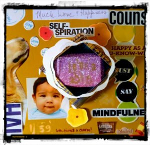 I love snail mail! I keep almost every card I’m given because I’m a sucker for sentimental and I use them in my crafting projects. The flowers I incorporated throughout my board was a card given to me from a friend. “Much love and happiness” text insert on my board was written by my mom in a note to me she sent earlier in the year. These little touches add another element and sentiment to the board. Get creative and have fun!
