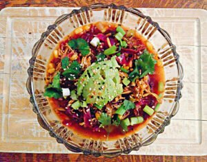 Sprinkle some spices, turn on the crockpot and you’re halfway there to your delicious feast! I paired the chicken with sushi rice/cauliflower rice combo, guacamole and spinach. You could make a potato dish and salad. Whatever you fancy, just remember not to stress over your next hosting event!